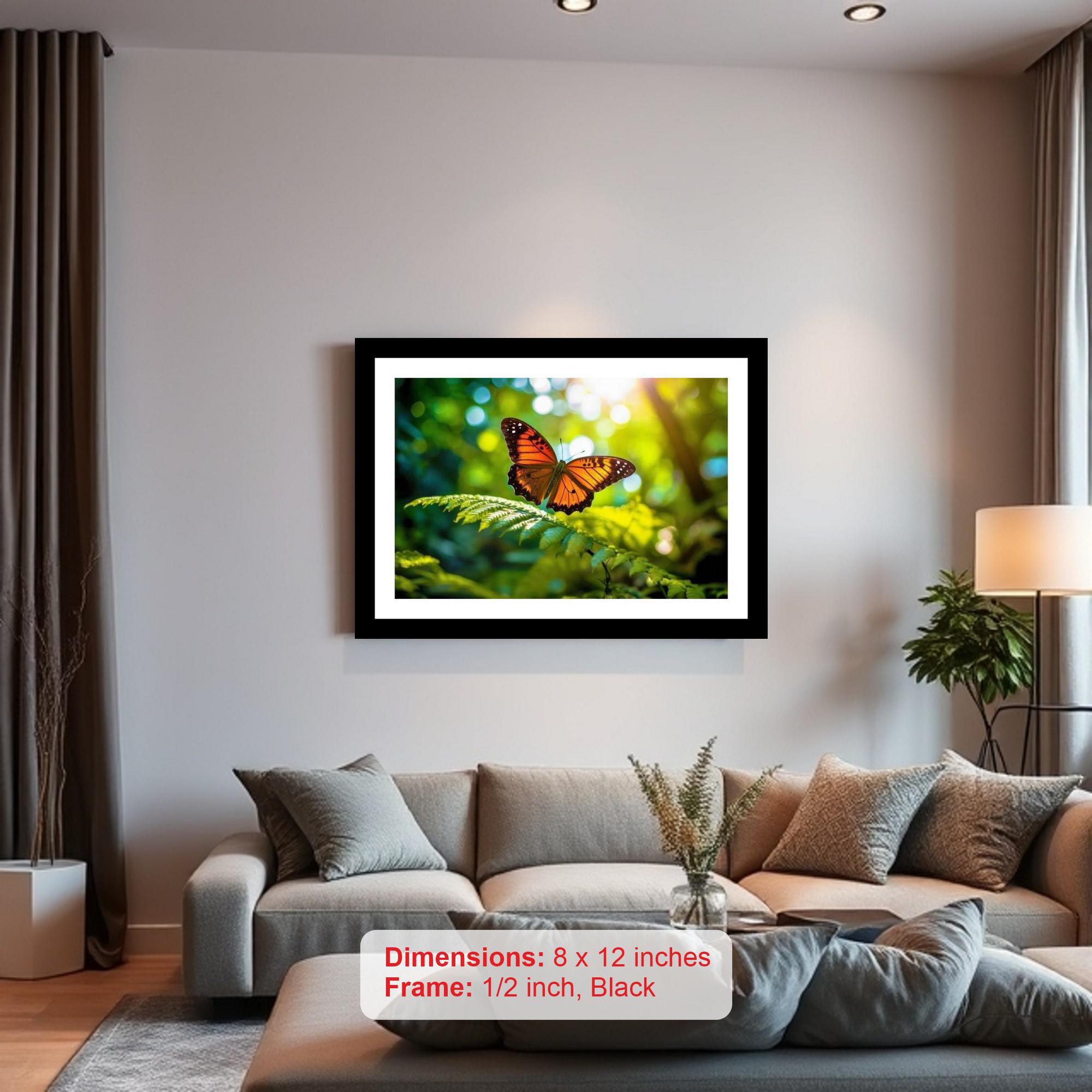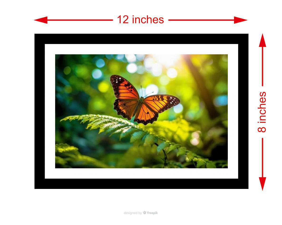 A sun-kissed butterfly graces a fern, a vibrant snapshot of nature's golden harmony. Colors pop, details are crisp - a true visual feast for the eyes. The digital reprint boasts a striking composition, breathing new life into a beautiful photograph. Versatile Decor: Ideal for enhancing the aesthetic appeal of living rooms and bedrooms Enhanced Durability: Weather-shield laminated digital print for lasting vibrancy and protection Premium Framing: Constructed with a high-quality, durable fiber frame for long-term stability Precise Dimensions: 30 cm x 20 cm x 1 cm