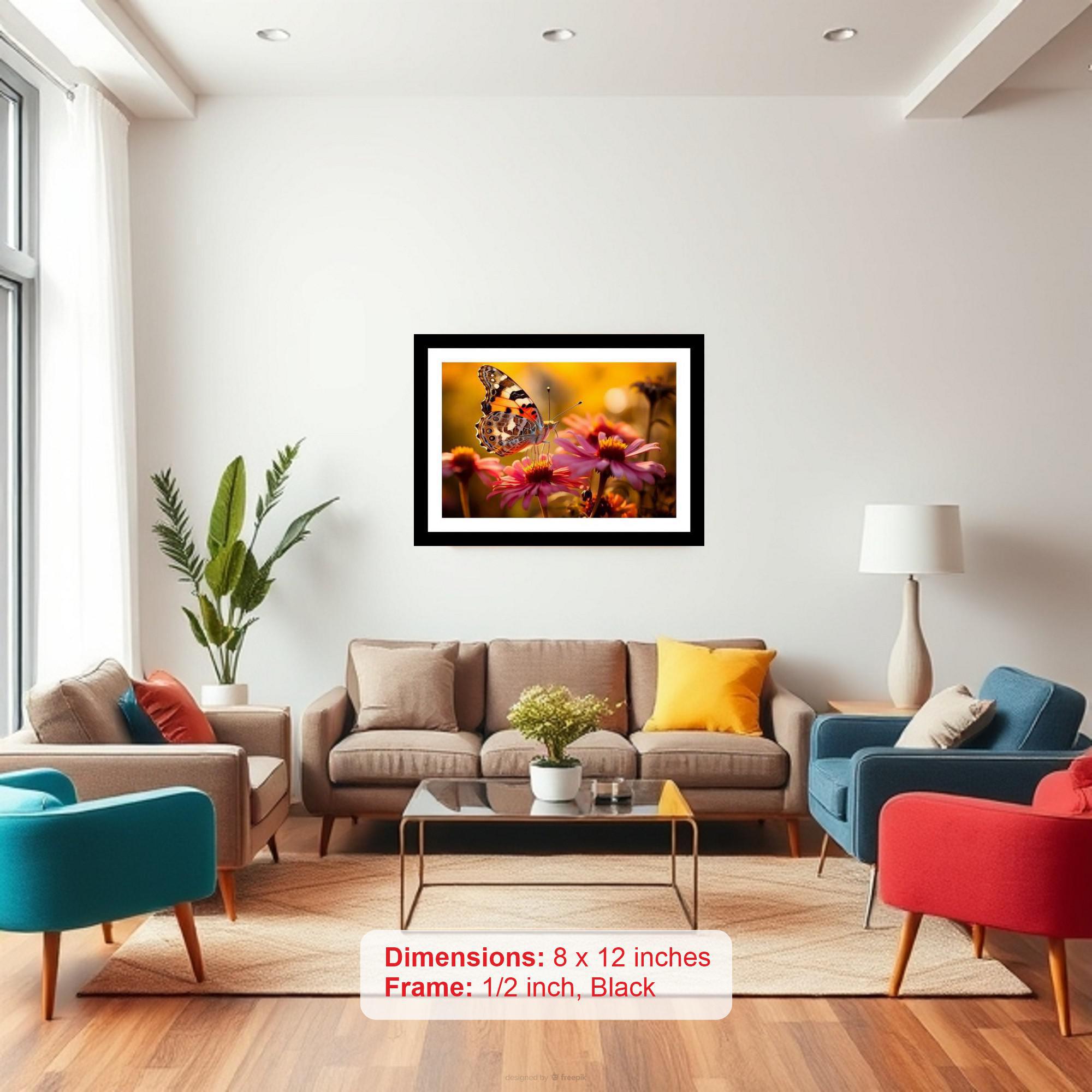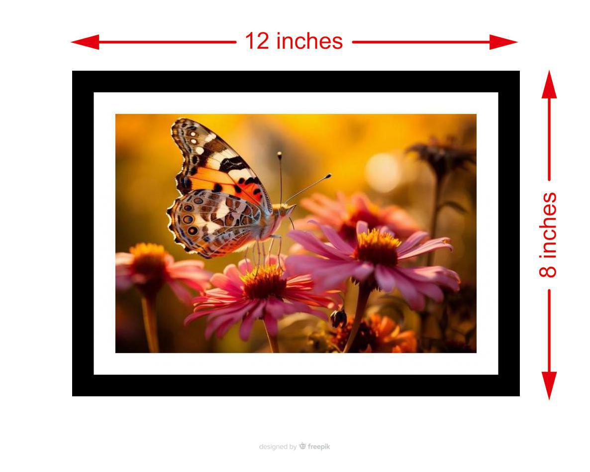 Golden light kisses a painted lady butterfly on a pink bloom: a perfect, fleeting moment captured beautifully. The colors pop, and the print is so crisp, it feels like looking through a window. The reprint boasts a strikingly balanced composition, breathing new life into the photo's original beauty. Versatile Decor: Ideal for enhancing the aesthetic appeal of living rooms and bedrooms Enhanced Durability: Weather-shield laminated digital print for lasting vibrancy and protection Premium Framing: Constructed with a high-quality, durable fiber frame for long-term stability Precise Dimensions: 30 cm x 20 cm x 1 cm