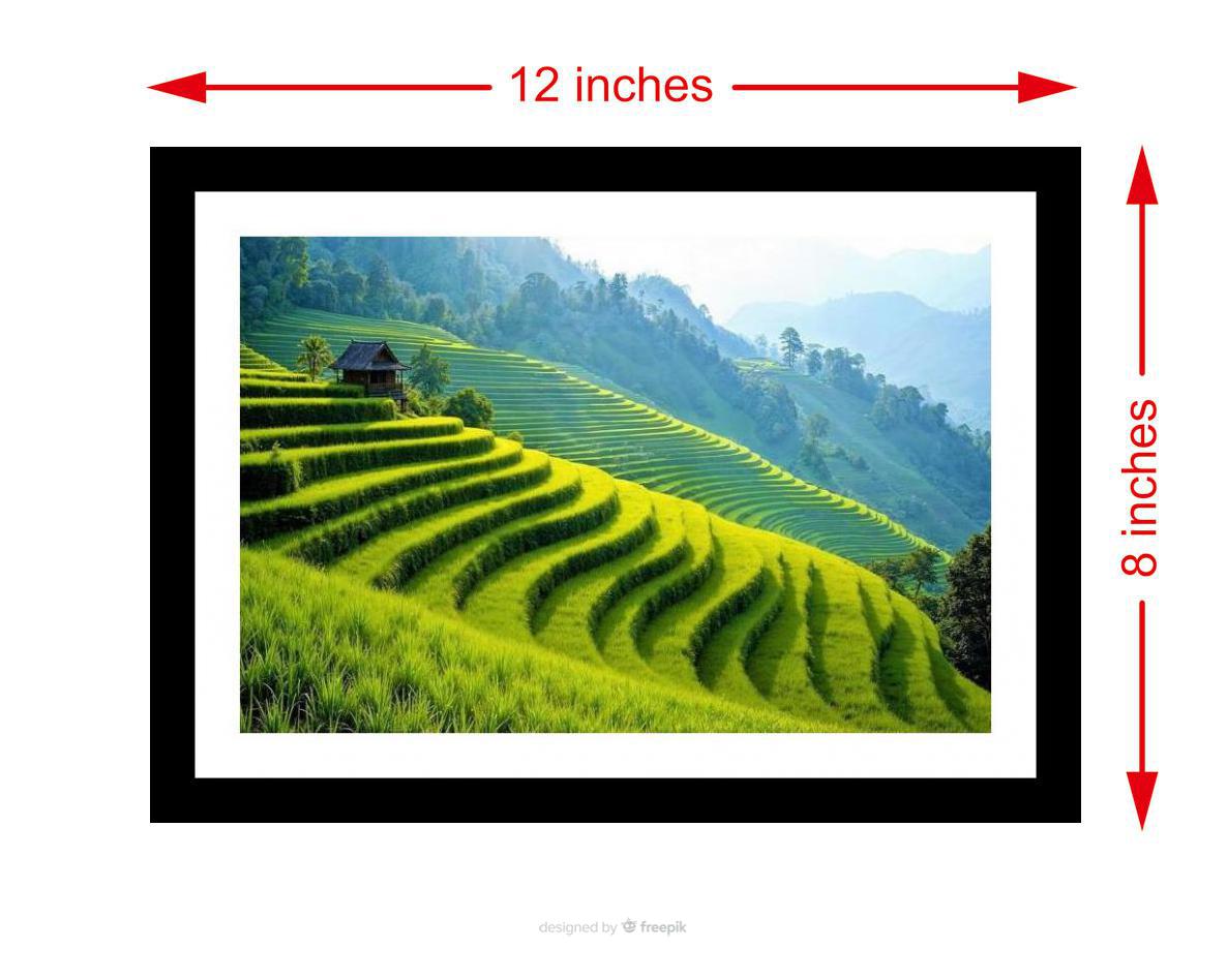 Serene rice terraces cascade, a house nestled in vibrant green: a breathtaking, peaceful landscape. The colors are vibrant, the print is crisp, and the details pop - a stunning reproduction! The reprint boasts a striking composition; the photographer's vision shines anew in digital clarity. Versatile Decor: Ideal for enhancing the aesthetic appeal of living rooms and bedrooms Enhanced Durability: Weather-shield laminated digital print for lasting vibrancy and protection Premium Framing: Constructed with a high-quality, durable fiber frame for long-term stability Precise Dimensions: 30 cm x 20 cm x 1 cm