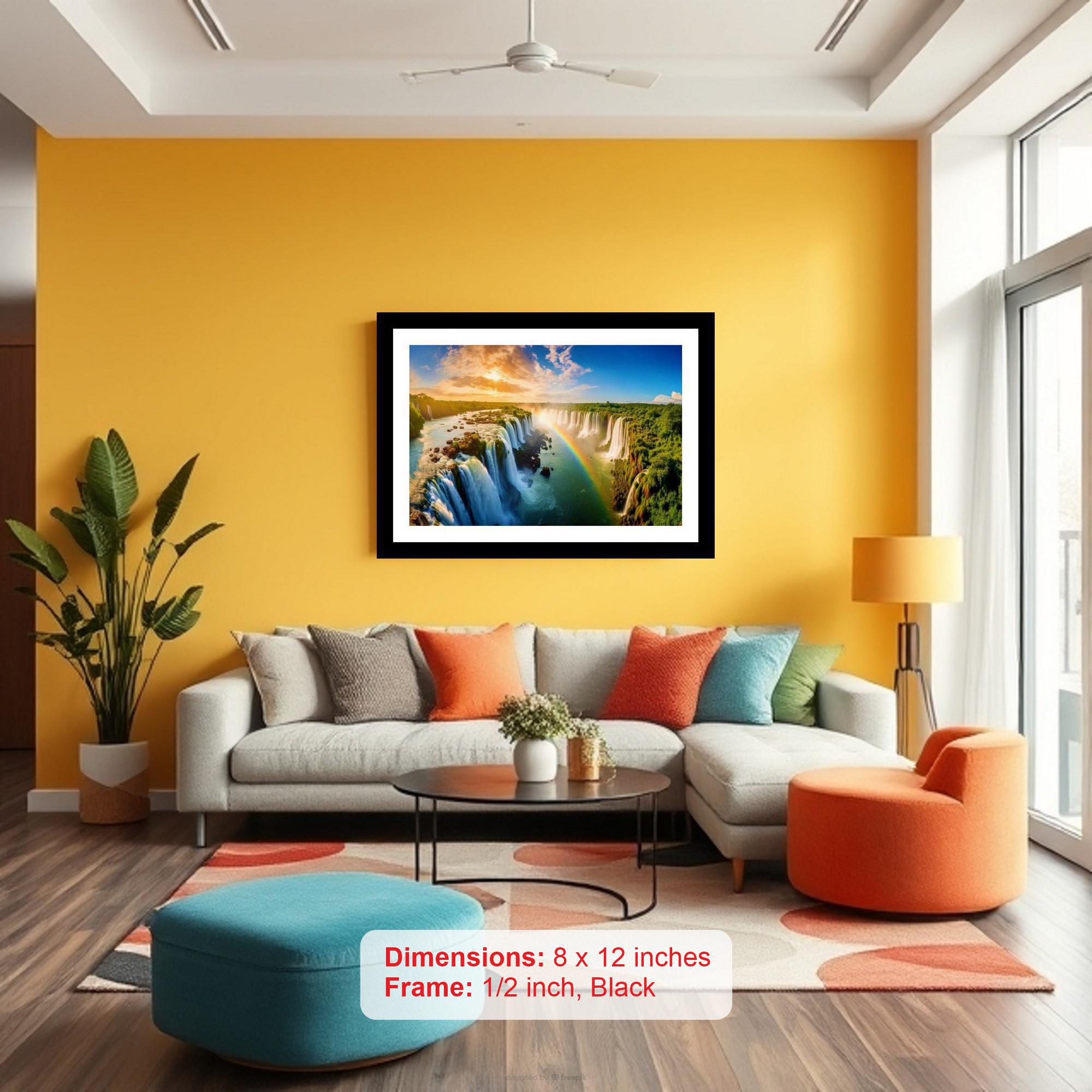 Rainbowed Iguazu Falls sunset: Raw power & beauty meet in a breathtaking spectacle of nature! The colors pop and the print is incredibly sharp, capturing every detail of the original photo. The digital reprint boasts a striking composition, breathing new life into the photograph's original beauty. Versatile Decor: Ideal for enhancing the aesthetic appeal of living rooms and bedrooms Enhanced Durability: Weather-shield laminated digital print for lasting vibrancy and protection Premium Framing: Constructed with a high-quality, durable fiber frame for long-term stability Precise Dimensions: 30 cm x 20 cm x 1 cm