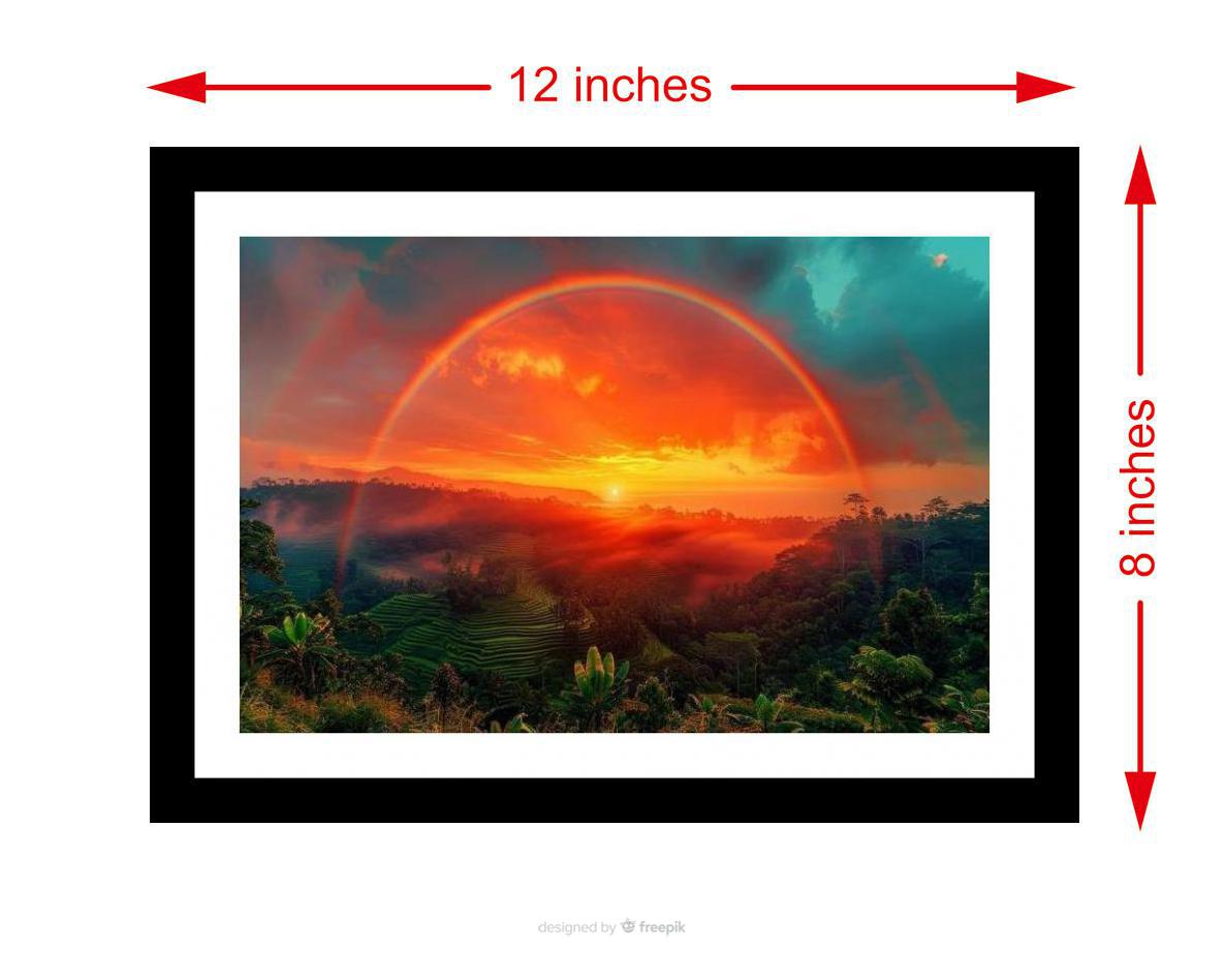 Fiery sunset, vibrant rainbow, and lush rice terraces create a breathtaking scene. The colors pop and the print is so crisp, it feels like I'm seeing the original photo anew. The reprint's composition is stunning! The digital clarity elevates the photo's inherent beauty perfectly. Versatile Decor: Ideal for enhancing the aesthetic appeal of living rooms and bedrooms Enhanced Durability: Weather-shield laminated digital print for lasting vibrancy and protection Premium Framing: Constructed with a high-quality, durable fiber frame for long-term stability Precise Dimensions: 30 cm x 20 cm x 1 cm