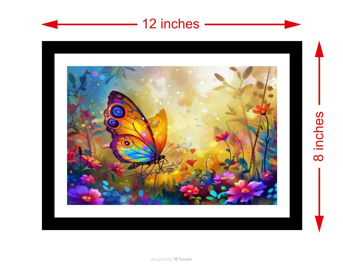 A vibrant butterfly amidst fantastical flora: a stunning, colorful explosion of nature's beauty. The reprint's colors are vibrant and the print is sharp; it truly captures the portrait's original beauty! The digital reprint boasts a striking composition, breathing new life into the portrait's inherent beauty. Versatile Decor: Ideal for enhancing the aesthetic appeal of living rooms and bedrooms Enhanced Durability: Weather-shield laminated digital print for lasting vibrancy and protection Premium Framing: Constructed with a high-quality, durable fiber frame for long-term stability Precise Dimensions: 30 cm x 20 cm x 1 cm