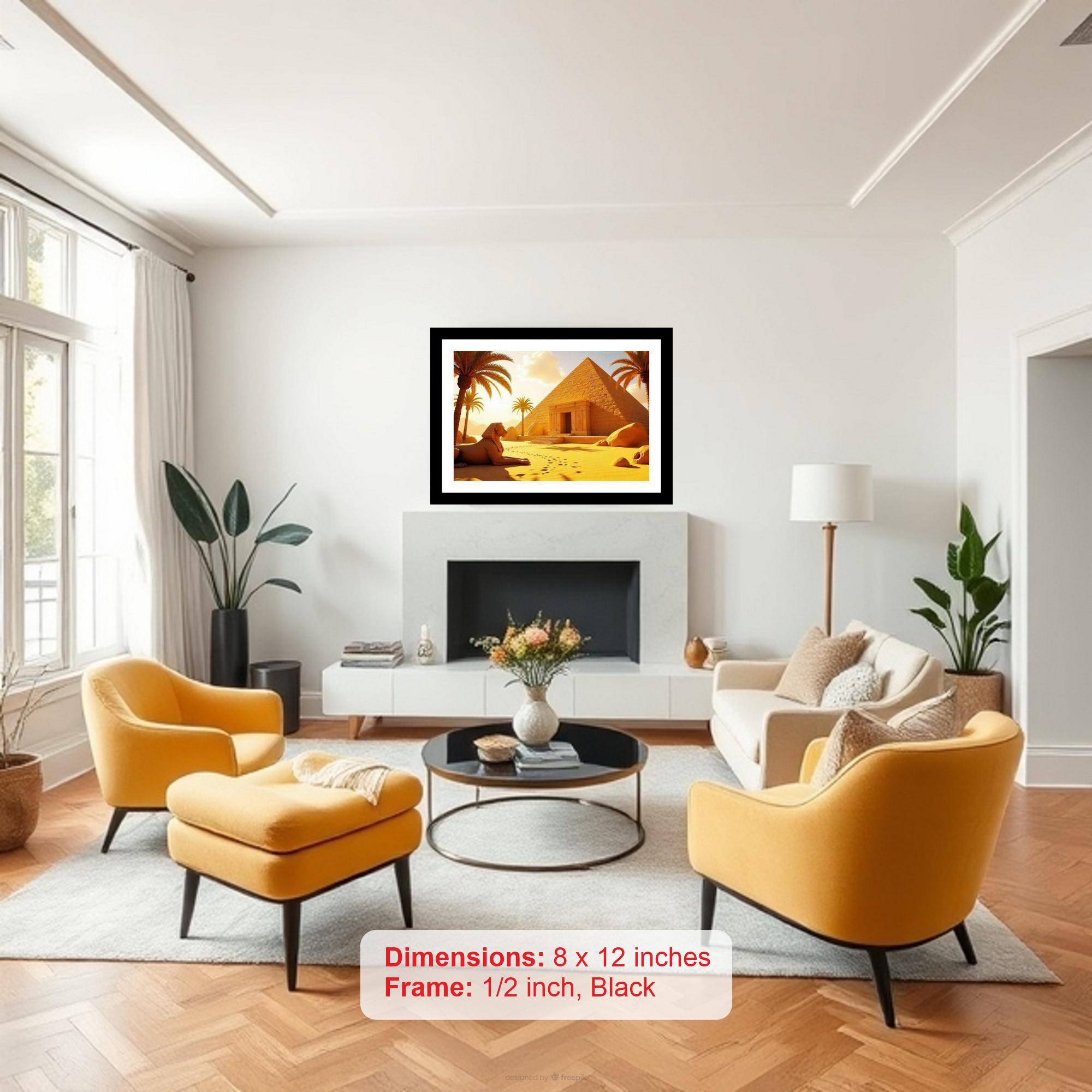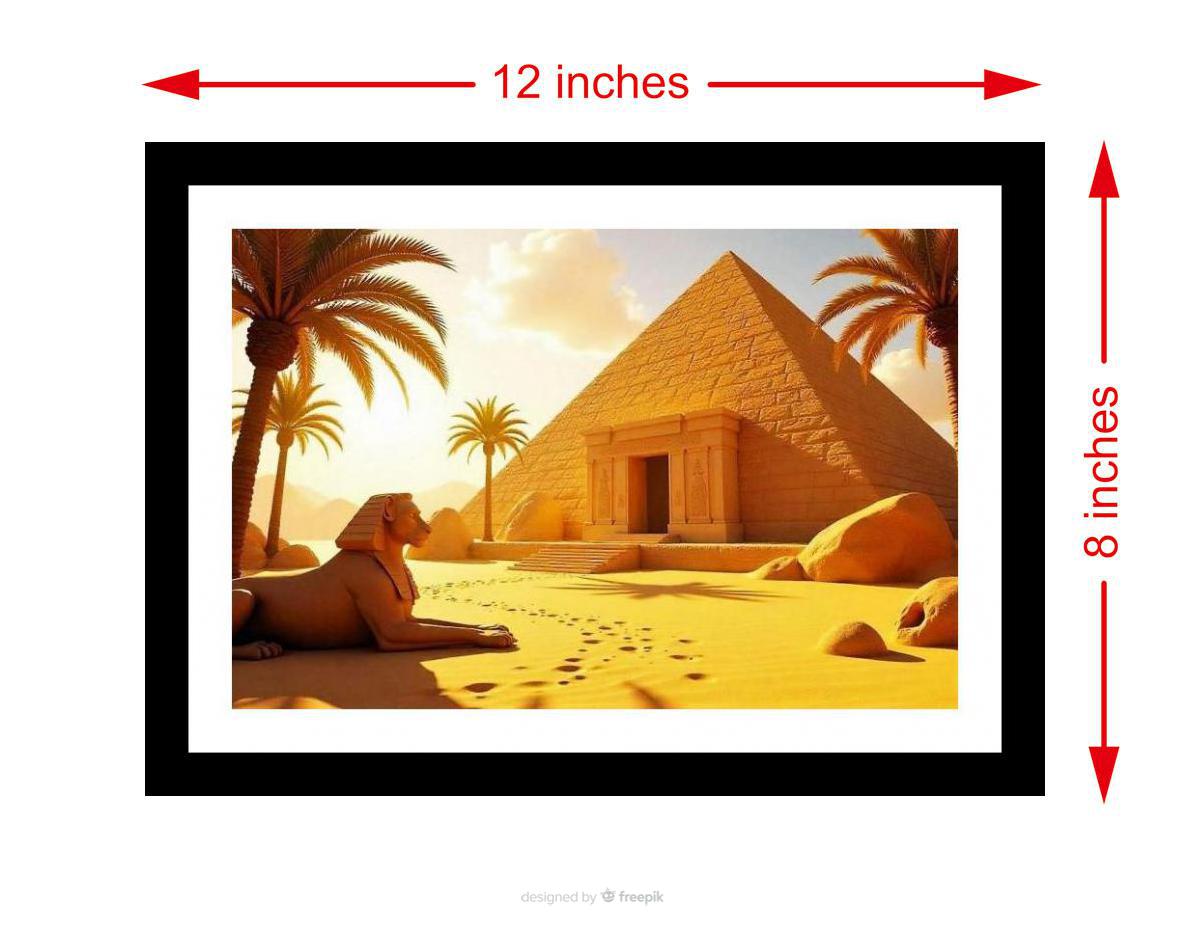 A stunning depiction of ancient Egypt: a majestic sphinx guarding a golden pyramid as the sun sets. The colors are vibrant and the print captures every exquisite detail of the original portrait. The digital reprint boasts a striking composition, breathing new life into the portrait's beauty. Versatile Decor: Ideal for enhancing the aesthetic appeal of living rooms and bedrooms Enhanced Durability: Weather-shield laminated digital print for lasting vibrancy and protection Premium Framing: Constructed with a high-quality, durable fiber frame for long-term stability Precise Dimensions: 30 cm x 20 cm x 1 cm