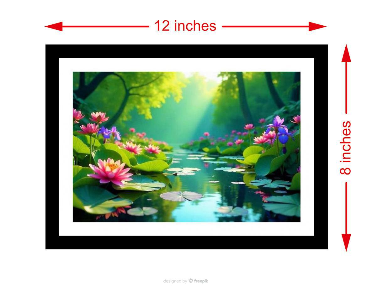 Sun-kissed serenity: Water lilies & irises bloom in a forest stream, a photographer's dream! The colors pop, and the print is so crisp, it's like looking through a window to the past. The reprint boasts a stunning composition, expertly capturing the photograph's beauty in a vibrant digital form. Versatile Decor: Ideal for enhancing the aesthetic appeal of living rooms and bedrooms Enhanced Durability: Weather-shield laminated digital print for lasting vibrancy and protection Premium Framing: Constructed with a high-quality, durable fiber frame for long-term stability Precise Dimensions: 30 cm x 20 cm x 1 cm