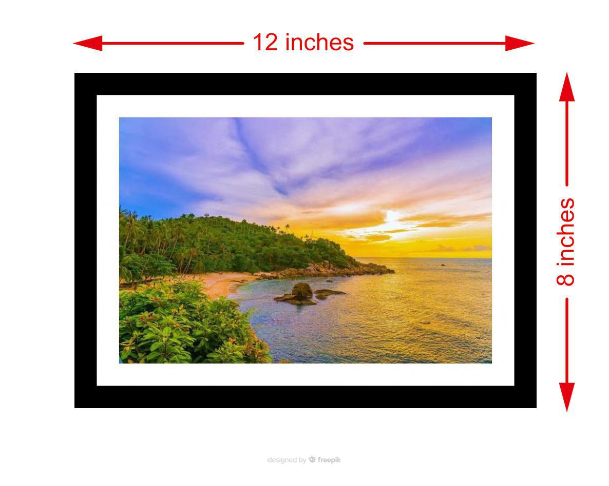 Golden sunset paints a tranquil tropical paradise: palm-fringed beach & turquoise sea, a breathtaking scene. The colors pop, and the print is so crisp, it feels like looking at the original photograph. The digital reprint boasts a striking composition, breathing new life into a truly beautiful photograph. Versatile Decor: Ideal for enhancing the aesthetic appeal of living rooms and bedrooms Enhanced Durability: Weather-shield laminated digital print for lasting vibrancy and protection Premium Framing: Constructed with a high-quality, durable fiber frame for long-term stability Precise Dimensions: 30 cm x 20 cm x 1 cm