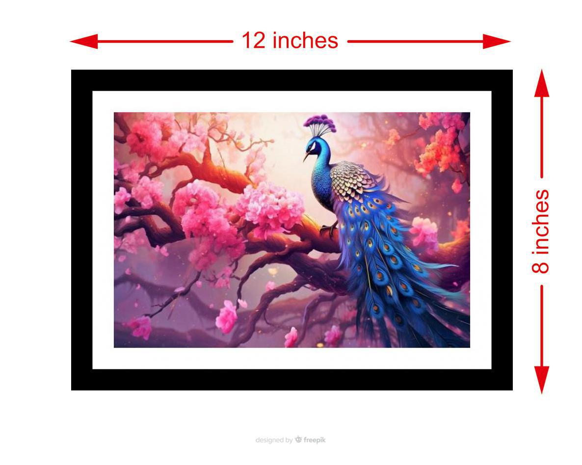 A stunning photo capturing a peacock's majesty amid cherry blossoms—nature's vibrant masterpiece! Colors pop, details crisp - a true testament to the original photograph's beauty. The digital reprint boasts a striking composition, breathing new life into the photograph's inherent beauty. Versatile Decor: Ideal for enhancing the aesthetic appeal of living rooms and bedrooms Enhanced Durability: Weather-shield laminated digital print for lasting vibrancy and protection Premium Framing: Constructed with a high-quality, durable fiber frame for long-term stability Precise Dimensions: 30 cm x 20 cm x 1 cm