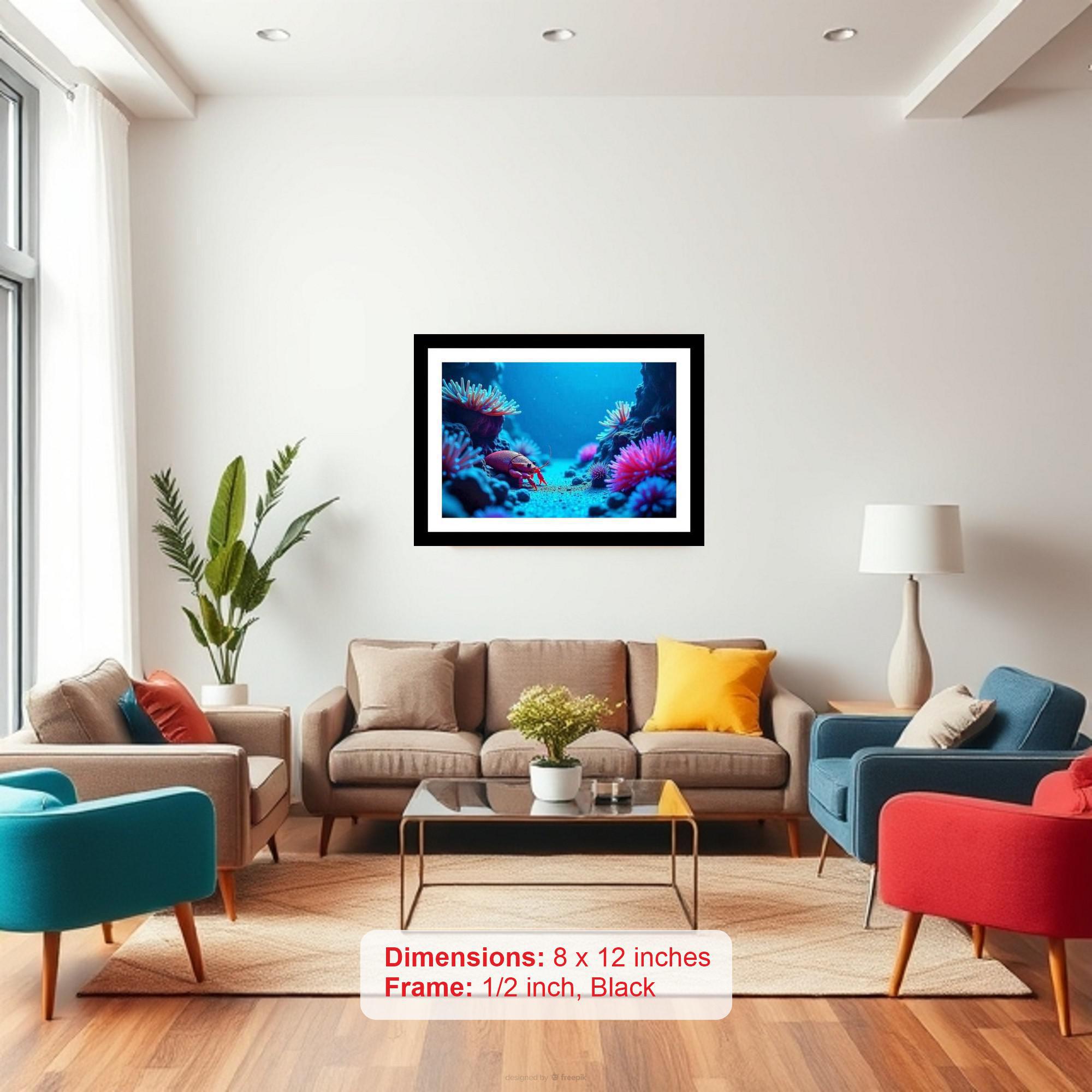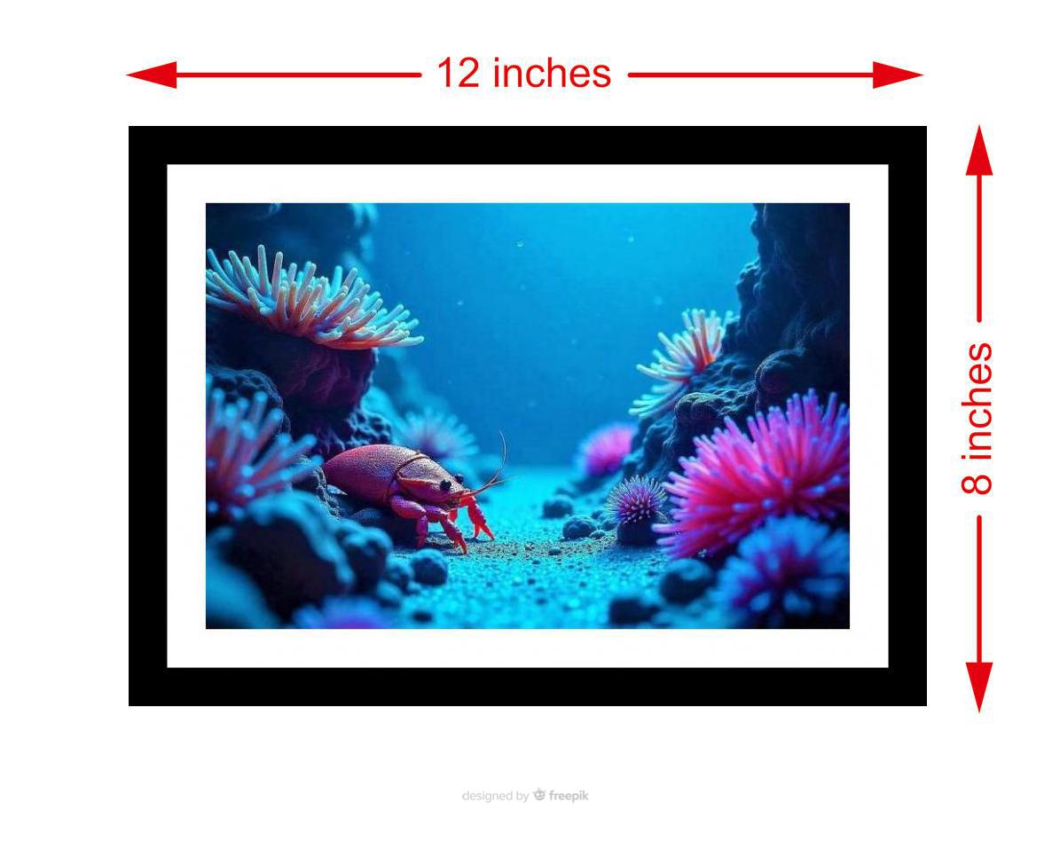 Vibrant crab in bioluminescent anemone garden: a stunning underwater discovery! The colors pop, and the print quality is so sharp it feels like you're there. The digital reprint boasts a striking composition; the photographer's vision shines anew with impeccable clarity. Versatile Decor: Ideal for enhancing the aesthetic appeal of living rooms and bedrooms Enhanced Durability: Weather-shield laminated digital print for lasting vibrancy and protection Premium Framing: Constructed with a high-quality, durable fiber frame for long-term stability Precise Dimensions: 30 cm x 20 cm x 1 cm
