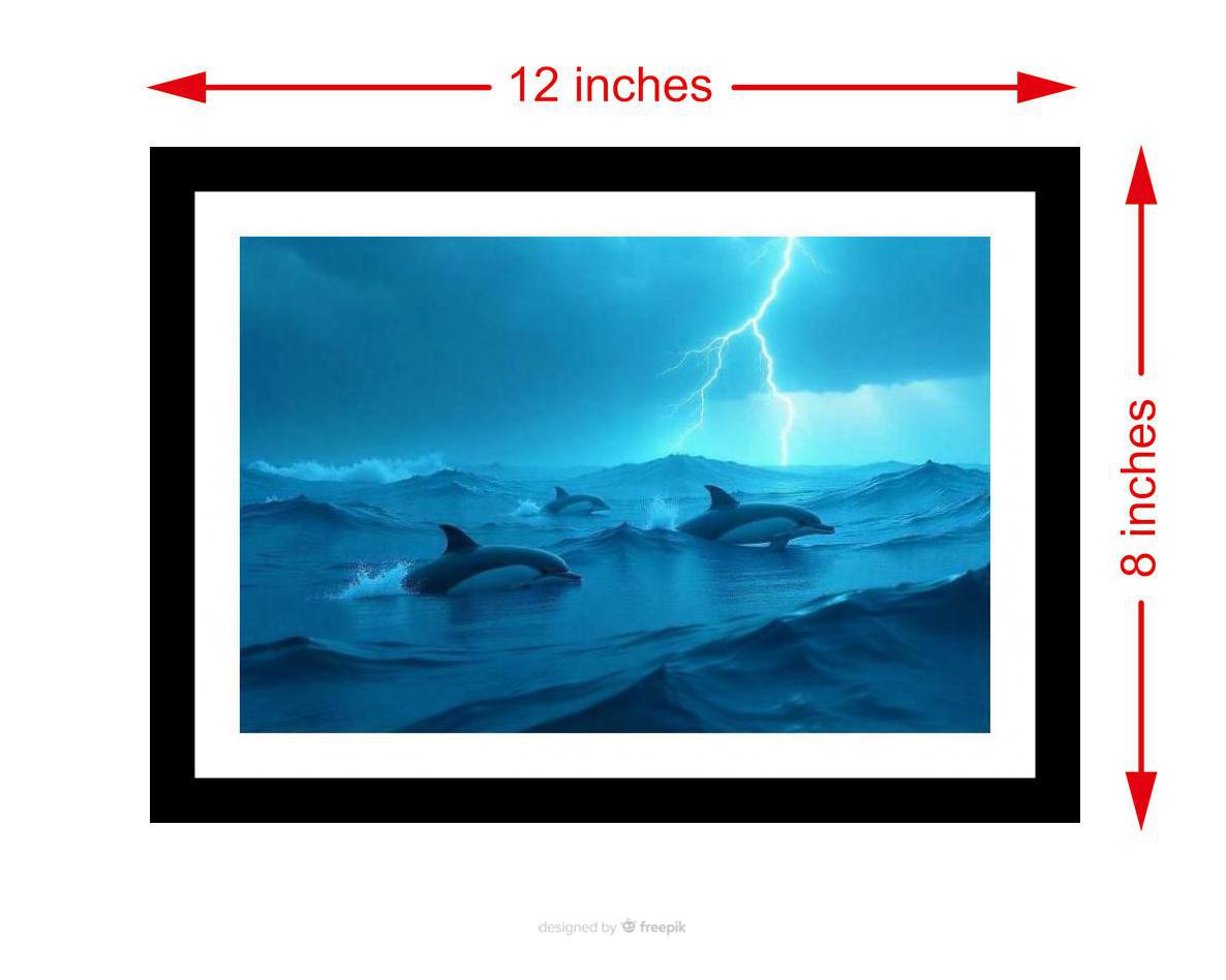 Awe-inspiring image! Dolphins dance with nature's fury, a lightning-lit ballet in stormy seas. Colors are vibrant and the print quality captures every exquisite detail of the original photo. The digital reprint boasts a strikingly composed photograph, expertly balancing light and shadow for a captivating image. Versatile Decor: Ideal for enhancing the aesthetic appeal of living rooms and bedrooms Enhanced Durability: Weather-shield laminated digital print for lasting vibrancy and protection Premium Framing: Constructed with a high-quality, durable fiber frame for long-term stability Precise Dimensions: 30 cm x 20 cm x 1 cm