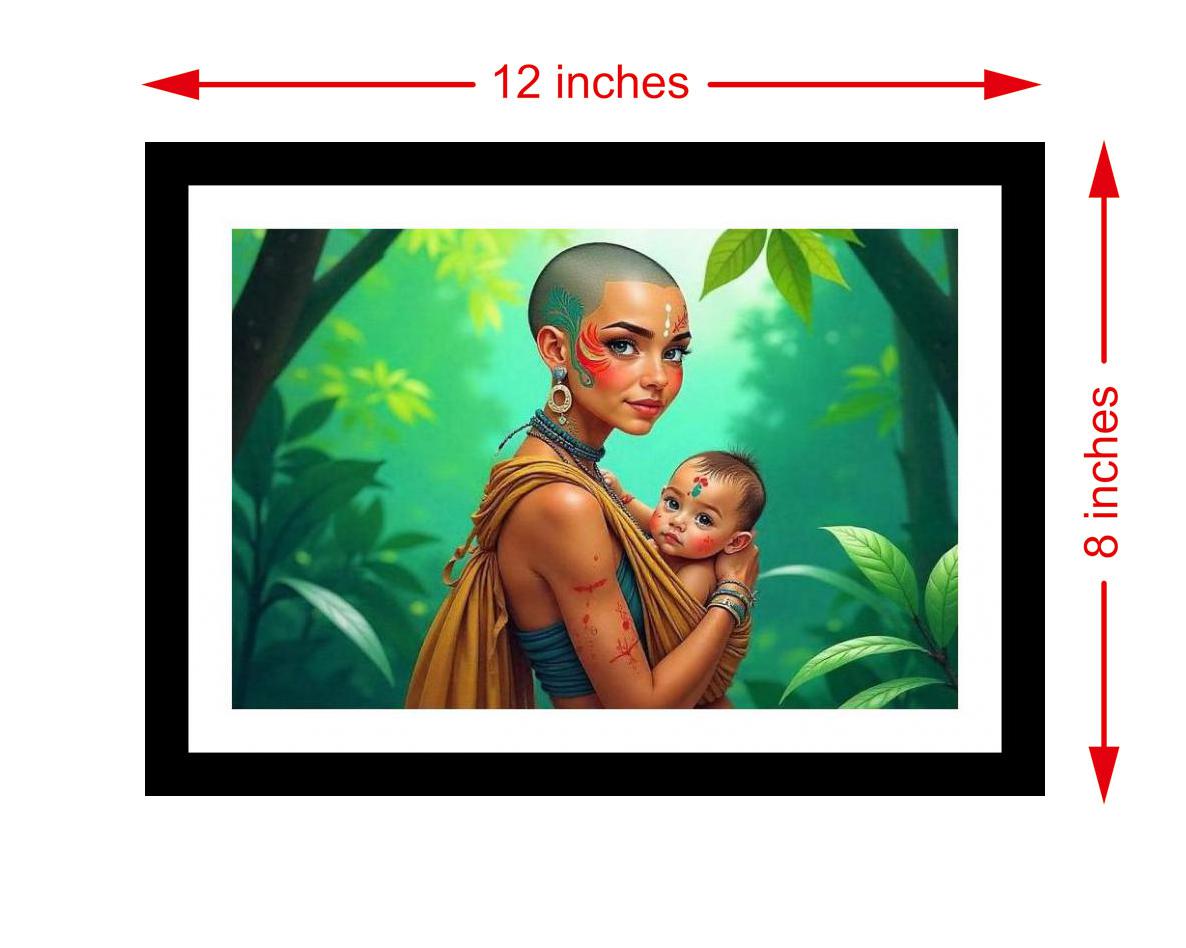 A vibrant and tender depiction of maternal love, adorned with tribal artistry and set in lush nature. The reprint's colors are vibrant and the print is sharp, truly capturing the portrait's beauty! The digital reprint boasts a striking composition, capturing the portrait's original beauty with stunning clarity. Versatile Decor: Ideal for enhancing the aesthetic appeal of living rooms and bedrooms Enhanced Durability: Weather-shield laminated digital print for lasting vibrancy and protection Premium Framing: Constructed with a high-quality, durable fiber frame for long-term stability Precise Dimensions: 30 cm x 20 cm x 1 cm