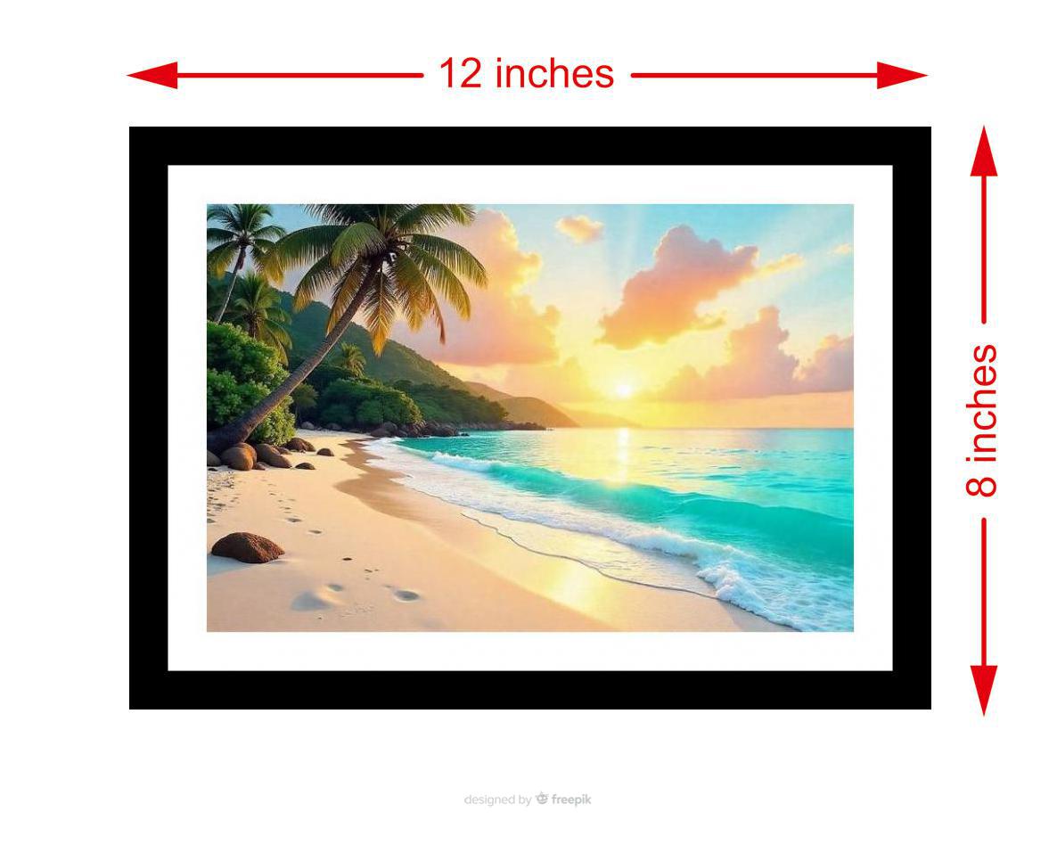 A stunning photo capturing paradise: a breathtaking sunset paints a pristine beach in radiant hues. The reprint's vibrant colors and crisp detail truly captured the photograph's beauty, a stunning visual treat! The reprint's masterful composition breathes new life into the photograph, highlighting its exquisite beauty. Versatile Decor: Ideal for enhancing the aesthetic appeal of living rooms and bedrooms Enhanced Durability: Weather-shield laminated digital print for lasting vibrancy and protection Premium Framing: Constructed with a high-quality, durable fiber frame for long-term stability Precise Dimensions: 30 cm x 20 cm x 1 cm