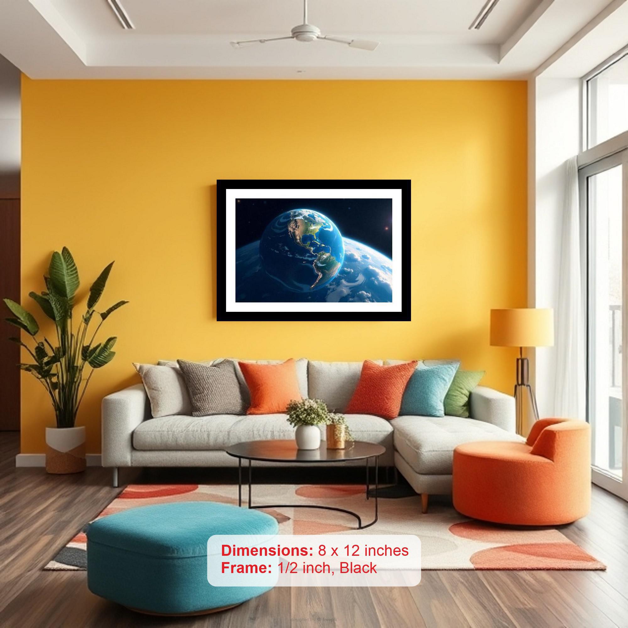 Stunning Earth view: Americas bask under swirling clouds, a breathtaking cosmic masterpiece! Colors pop and the print is incredibly sharp, like seeing the photo for the first time. The reprint's masterful composition breathes new life into the photograph, making it truly stunning. Versatile Decor: Ideal for enhancing the aesthetic appeal of living rooms and bedrooms Enhanced Durability: Weather-shield laminated digital print for lasting vibrancy and protection Premium Framing: Constructed with a high-quality, durable fiber frame for long-term stability Precise Dimensions: 30 cm x 20 cm x 1 cm