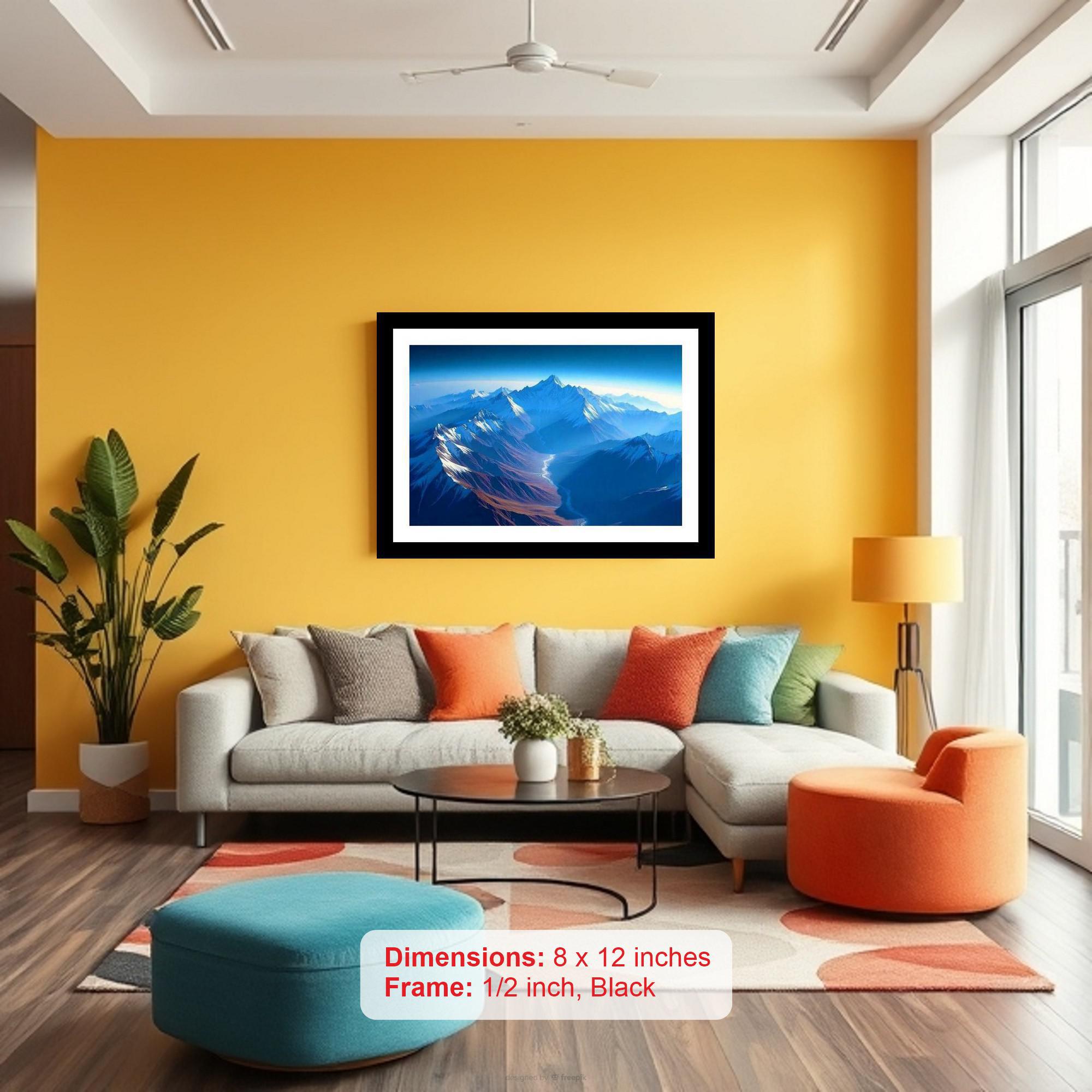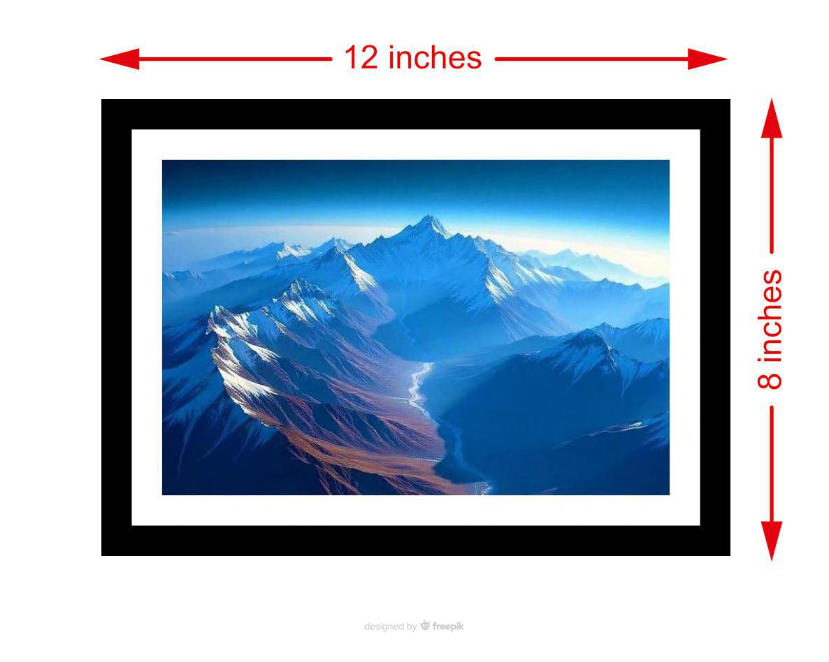 A stunning shot! Snow-capped peaks and a winding valley create a breathtaking vista of majestic beauty. Colors are vibrant, the print is crisp, and every detail shines. A true masterpiece revived! The reprint boasts a striking composition; balanced tones and sharp details breathe new life into this photograph. Versatile Decor: Ideal for enhancing the aesthetic appeal of living rooms and bedrooms Enhanced Durability: Weather-shield laminated digital print for lasting vibrancy and protection Premium Framing: Constructed with a high-quality, durable fiber frame for long-term stability Precise Dimensions: 30 cm x 20 cm x 1 cm