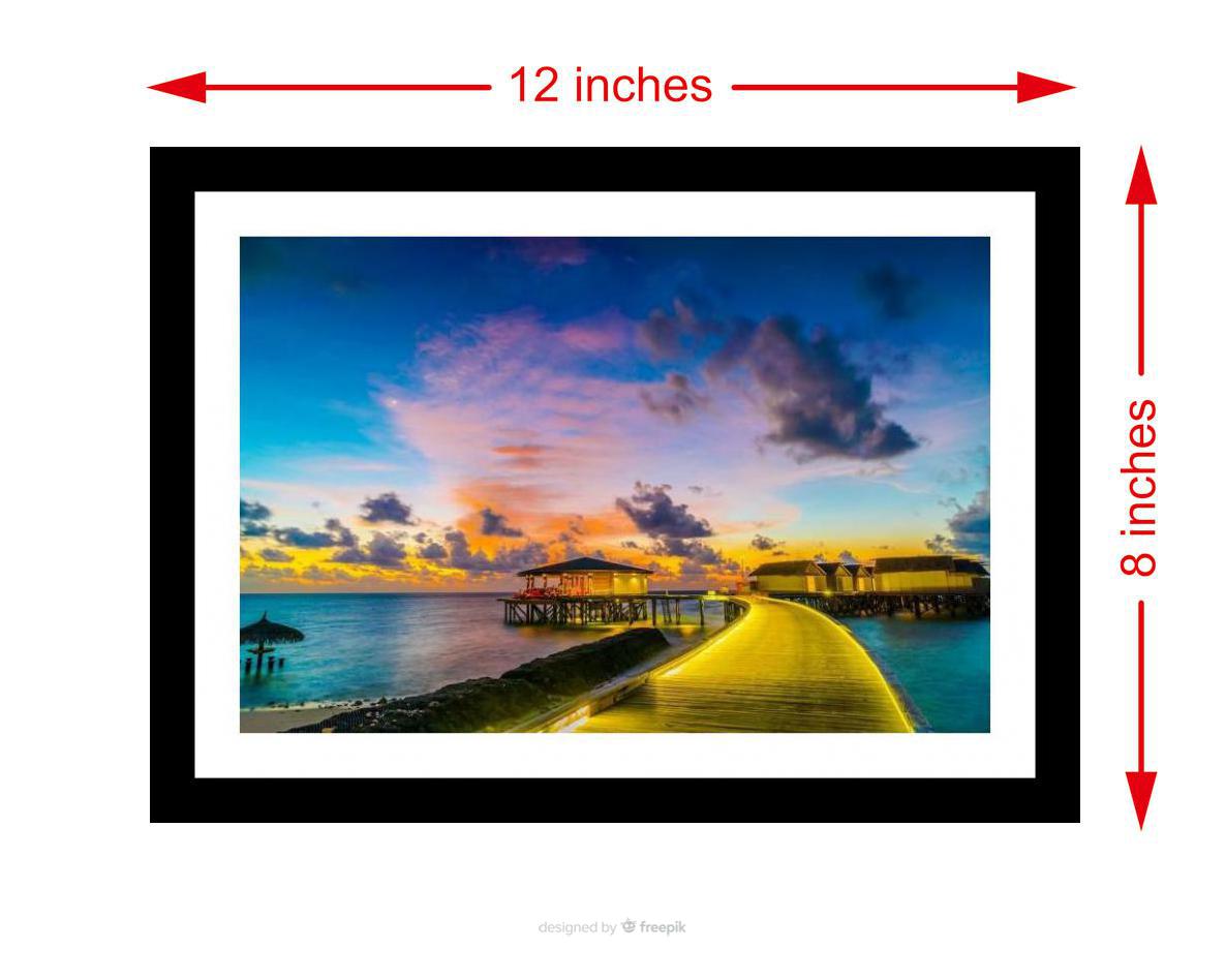 A breathtaking photo capturing paradise: sunset paints overwater bungalows and a glowing walkway in pure bliss. The colors pop and the print is so crisp, like looking through a window into the past. The digital reprint boasts a strikingly composed photograph; its crisp detail and vibrant hues are truly captivating. Versatile Decor: Ideal for enhancing the aesthetic appeal of living rooms and bedrooms Enhanced Durability: Weather-shield laminated digital print for lasting vibrancy and protection Premium Framing: Constructed with a high-quality, durable fiber frame for long-term stability Precise Dimensions: 30 cm x 20 cm x 1 cm