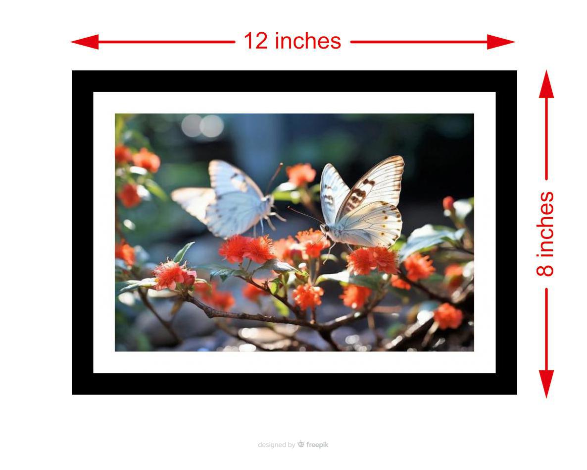 Delicate white butterflies dance amidst vibrant red blooms, a captivating and harmonious natural portrait. Colors are vibrant, print is crisp, capturing the original photograph's beauty perfectly. The digital reprint's striking composition breathes new life into the beautiful photograph. Excellent work! Versatile Decor: Ideal for enhancing the aesthetic appeal of living rooms and bedrooms Enhanced Durability: Weather-shield laminated digital print for lasting vibrancy and protection Premium Framing: Constructed with a high-quality, durable fiber frame for long-term stability Precise Dimensions: 30 cm x 20 cm x 1 cm