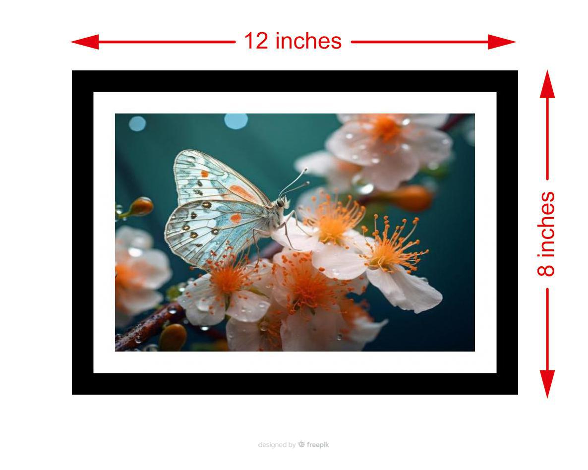 A serene symphony of blue: butterfly and blossoms unite in delicate, dewy beauty. Stunning colors and crisp detail, this reprint truly brings the beautiful photograph to life! The digital reprint boasts a strikingly balanced composition, truly capturing the photograph's original artistry. Versatile Decor: Ideal for enhancing the aesthetic appeal of living rooms and bedrooms Enhanced Durability: Weather-shield laminated digital print for lasting vibrancy and protection Premium Framing: Constructed with a high-quality, durable fiber frame for long-term stability Precise Dimensions: 30 cm x 20 cm x 1 cm