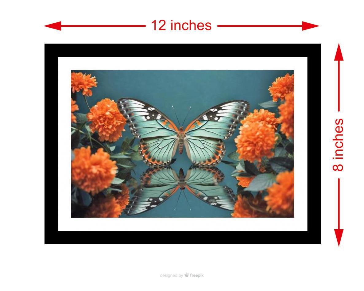 Teal butterfly with orange accents, mirrored amidst orange blooms, a captivating visual symphony. Colors pop, print is crisp & clean - truly brings the photo to life. The digital reprint boasts a strikingly composed image; its clarity and balance are truly commendable. Versatile Decor: Ideal for enhancing the aesthetic appeal of living rooms and bedrooms Enhanced Durability: Weather-shield laminated digital print for lasting vibrancy and protection Premium Framing: Constructed with a high-quality, durable fiber frame for long-term stability Precise Dimensions: 30 cm x 20 cm x 1 cm