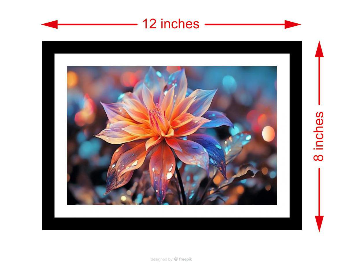 A stunning shot of a dew-kissed flower bursting with iridescent color against a dreamy bokeh background. Colors pop, details crisp, feels like the original photograph came alive again. The digital reprint boasts a striking composition, perfectly capturing the original photograph's beauty. Versatile Decor: Ideal for enhancing the aesthetic appeal of living rooms and bedrooms Enhanced Durability: Weather-shield laminated digital print for lasting vibrancy and protection Premium Framing: Constructed with a high-quality, durable fiber frame for long-term stability Precise Dimensions: 30 cm x 20 cm x 1 cm