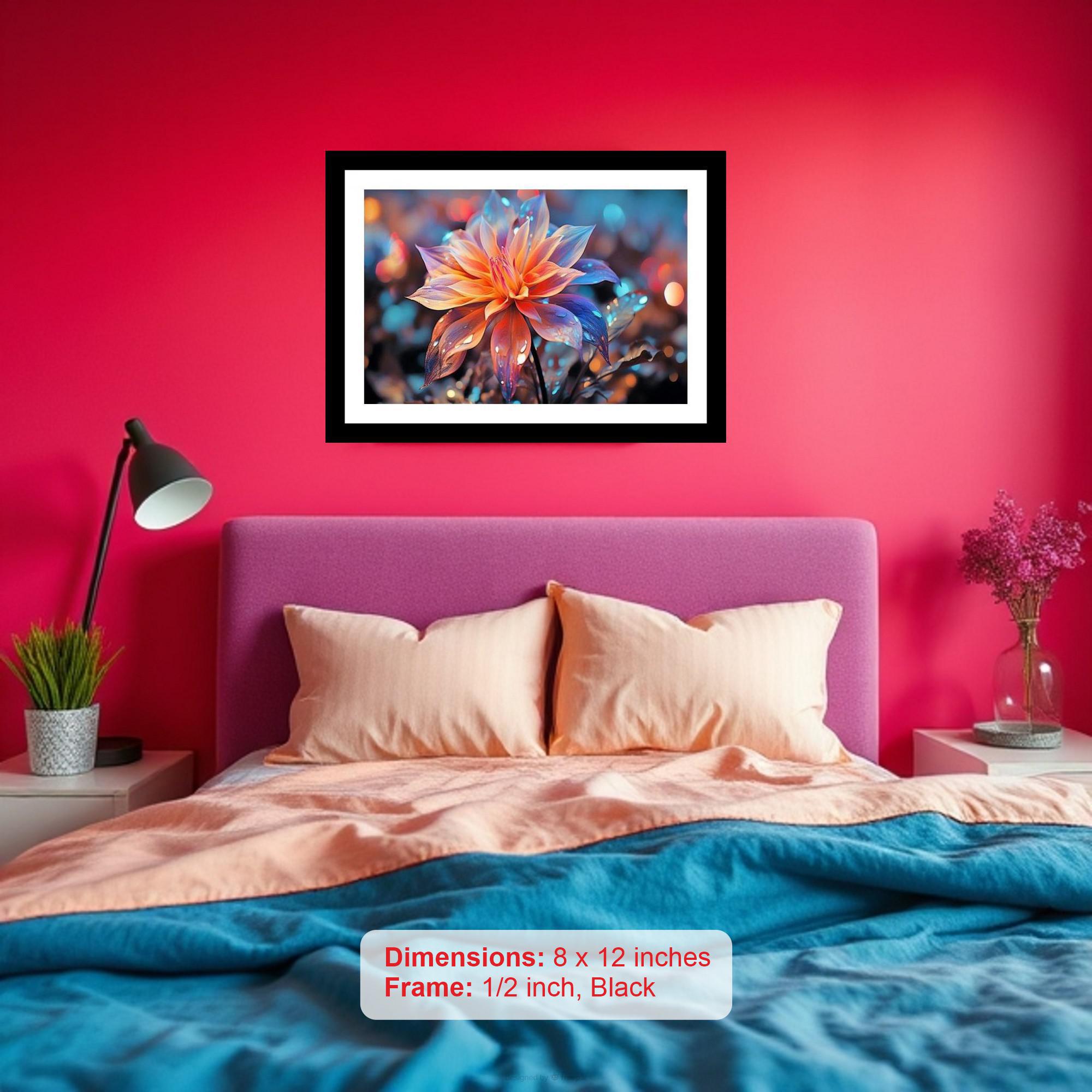 Add a touch of timeless elegance to your home with this stunning classic black framed digital reprint. This captivating photograph depicts a vibrant, dew-kissed flower radiating with iridescent colors. The delicate petals seem to glow against a dreamy bokeh backdrop, creating a mesmerizing focal point. The elegant black frame complements the image perfectly, adding a touch of sophistication and vintage charm to any room. Perfect for adding a pop of color and visual interest to your living room, bedroom, hallway, or office, this framed print will instantly elevate your decor. The high-quality digital reprint ensures that the image is crisp, clear, and full of detail, capturing the beauty of the original photograph.