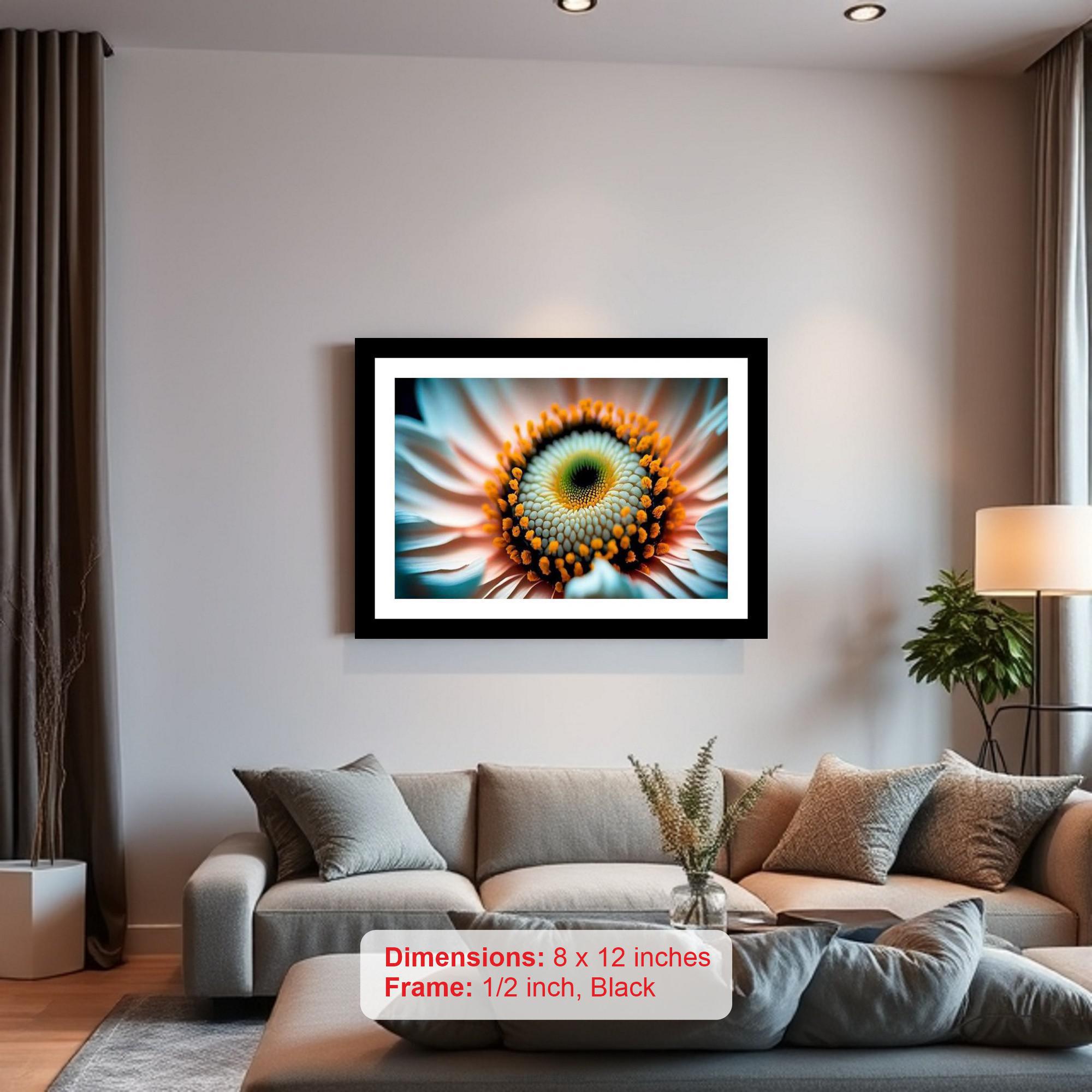 Elevate your home decor with this captivating vintage-inspired print! Featuring a mesmerizing close-up of a flower's intricate center, this elegant reproduction showcases vibrant colors and delicate textures, bringing a touch of nature's beauty indoors. The photograph is digitally reprinted to preserve its clarity and detail, and beautifully framed in a golden-toned vintage-style frame, adding a touch of classic charm to any room. Perfect for adding a sophisticated accent to your living room, bedroom, or office, this framed print is a timeless piece of art that will be admired for years to come. Its vibrant colors and detailed textures will draw the eye and create a focal point in your space. This piece brings botanical elegance in a ready-to-hang package.