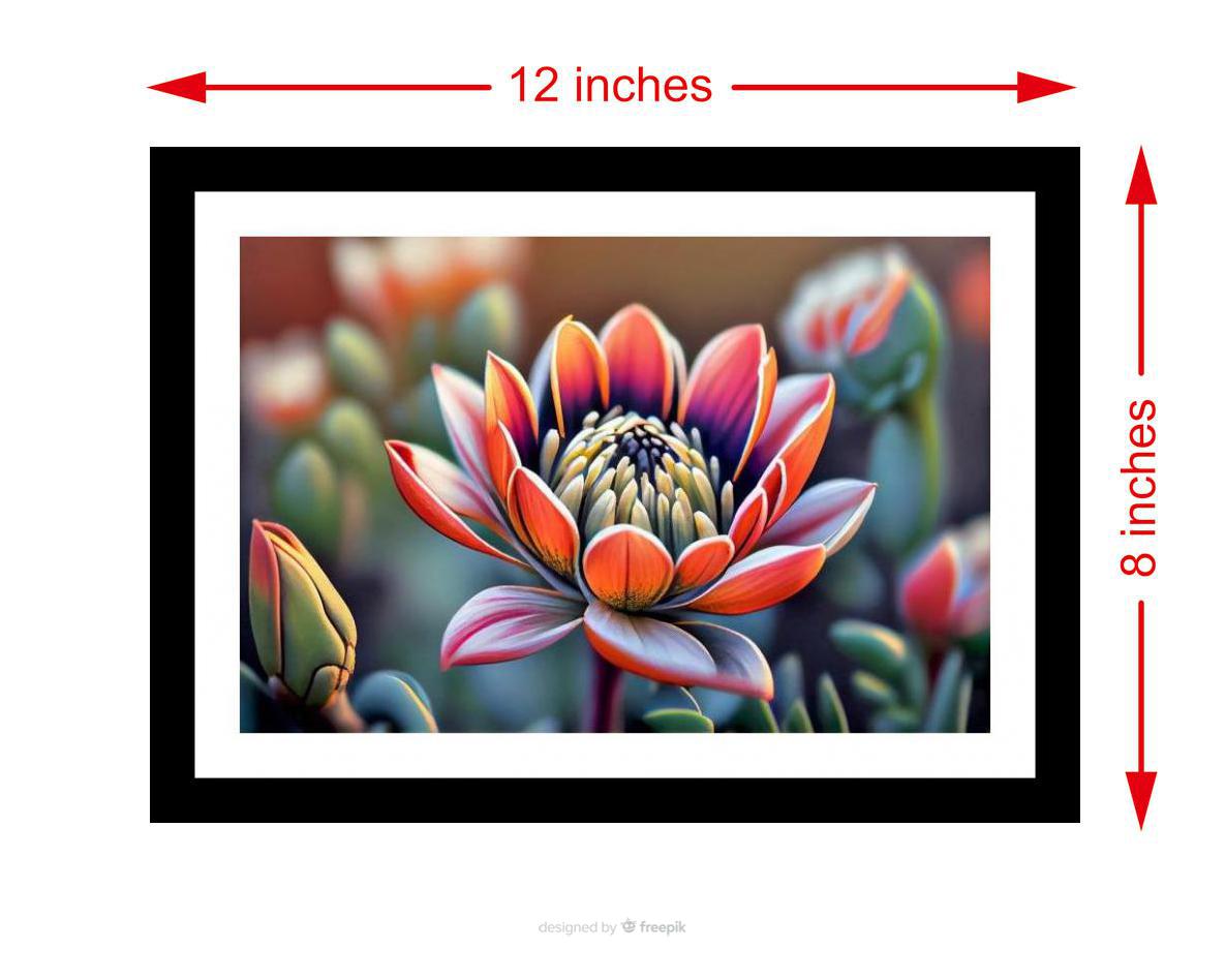 A vibrant bloom bursts with color, a delicate dance of orange and white. Colors pop and the print is so sharp, it's like looking through a window. The digital reprint boasts a striking composition, breathing new life into the beautiful, classic photograph. Versatile Decor: Ideal for enhancing the aesthetic appeal of living rooms and bedrooms Enhanced Durability: Weather-shield laminated digital print for lasting vibrancy and protection Premium Framing: Constructed with a high-quality, durable fiber frame for long-term stability Precise Dimensions: 30 cm x 20 cm x 1 cm