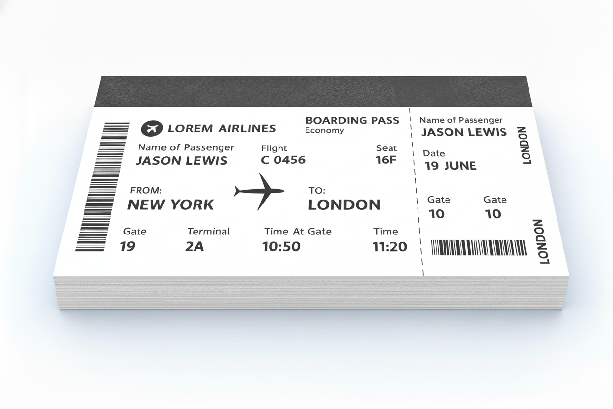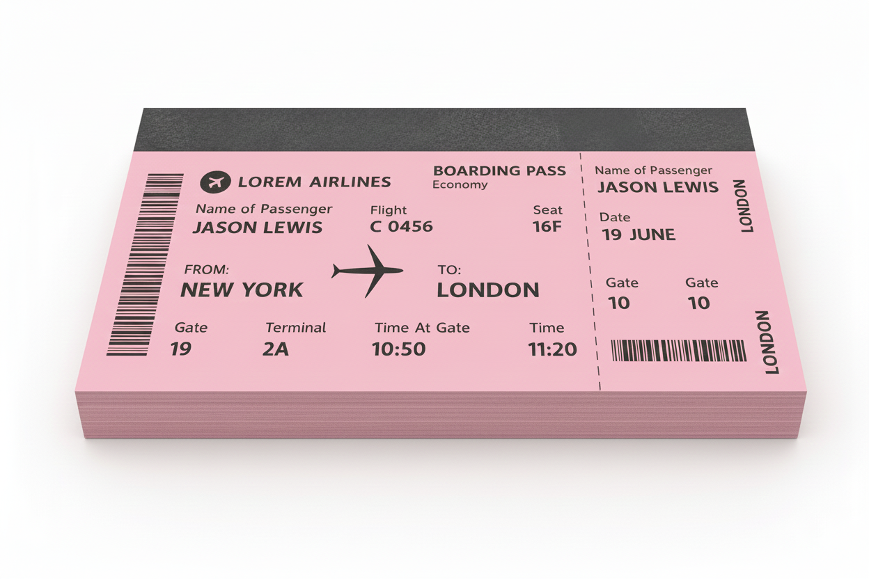 Our Monochromatic Boarding Pass service offers a professional, cost-effective printing solution on a variety of customer-selected colored paper stocks. Featuring crisp black-ink detail and durable materials, these customizable passes are ideal for events and travel businesses seeking a balance of style and functionality.