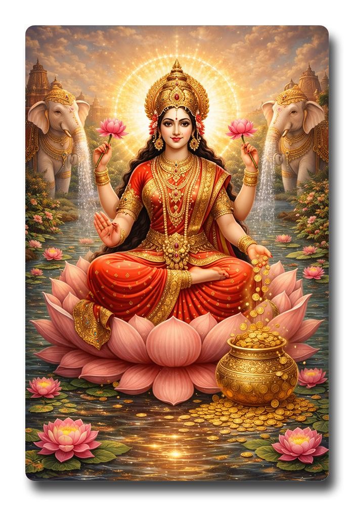 Invite divine abundance and radiant beauty into your home with our exquisite Sparkle Acrylic Photo Frame, meticulously depicting the revered Goddess Lakshmi. This stunning artwork captures the benevolent deity seated gracefully upon a vibrant lotus, a symbol of purity and spiritual growth. Witness the enchanting scene as golden coins cascade from her hand, representing an endless flow of wealth, fortune, and material prosperity directly into your life. Majestic elephants stand by, majestically showering blessings and embodying strength, wisdom, and auspicious new beginnings, amplifying the divine grace. Crafted from premium, durable sparkle acrylic, this frame shimmers with an ethereal glow, enhancing the sacred depiction and adding a touch of luxurious elegance to any space. The unique sparkling finish beautifully catches the light, creating a mesmerizing effect that uplifts the ambiance and draws the eye. Perfect for your pooja room, living room, office desk, or as a focal point on your altar, it serves as a constant reminder of divine blessings and financial well-being. This frame is not merely a decorative piece; it is a powerful symbol designed to attract positive energy, good luck, and prosperity into your surroundings. Ideal for gifting on special occasions like Diwali, housewarmings, weddings, or for anyone seeking to invite blessings and affluence, it makes a thoughtful and truly meaningful present. Elevate your spiritual decor and embrace the abundant blessings of Goddess Lakshmi with this captivating and elegant frame, a true testament to artistry and devotion. May it illuminate your home with prosperity, peace, and boundless auspiciousness.