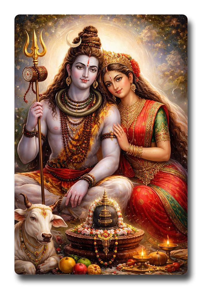Elevate your sacred space with our exquisite Sparkle Acrylic Photo Frame, a captivating depiction of Lord Shiva and Parvati in their serene, eternal union. This divine tableau is gracefully accompanied by the steadfast Nandi, Shiva's revered mount, and an array of traditional sacred offerings, all meticulously rendered to evoke profound devotion and spiritual tranquility. Crafted from premium, high-quality sparkle acrylic, this unique frame transcends ordinary display; it magically illuminates the artwork, catching and scattering light to create a mesmerizing. The intricate details of Shiva and Parvati's divine forms, their gentle, loving expressions, and the rich, vibrant hues are captured with breathtaking clarity and precision, inviting peace, harmony, and countless blessings into any environment. Perfectly sized for your home altar, a tranquil meditation corner, a contemplative puja room, or as an inspiring focal point in your living room or office, this lightweight yet incredibly durable frame is a magnificent piece of Hindu art. Its robust, scratch-resistant surface ensures the enduring beauty and pristine condition of this spiritual masterpiece for generations, offering lasting visual delight. Present this magnificent frame as a truly meaningful and reverent gift for loved ones; it is an ideal choice for housewarmings, weddings, anniversaries, special birthdays, or major festivals such as Diwali, Shivaratri, or Navratri. It serves as a constant, beautiful reminder of divine love, unwavering protection, and the powerful cosmic energy inherent in the Hindu pantheon. Invite this profound symbol of devotion into your home and allow its spiritual radiance to transform your surroundings, fostering an atmosphere of deep calm, unwavering faith, and an unbreakable spiritual connection. Easy to clean and maintain, this frame seamlessly blends contemporary aesthetic appeal with timeless, ancient spirituality, making it a cherished addition.