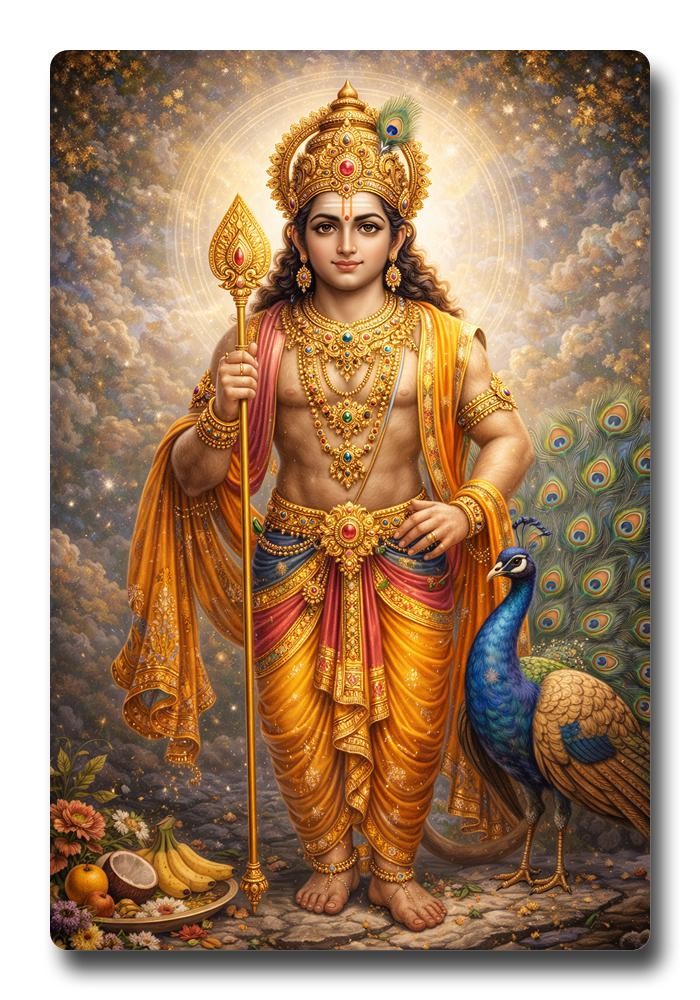 Divine Lord Murugan Gold, Spear & Peacock Acrylic Photo Frame, Sparkle Acrylic Photo Frame, Religious Images, Puja Room, Tabletop Framing Solutions, Residential/Commercial Decor, Premium Gifts