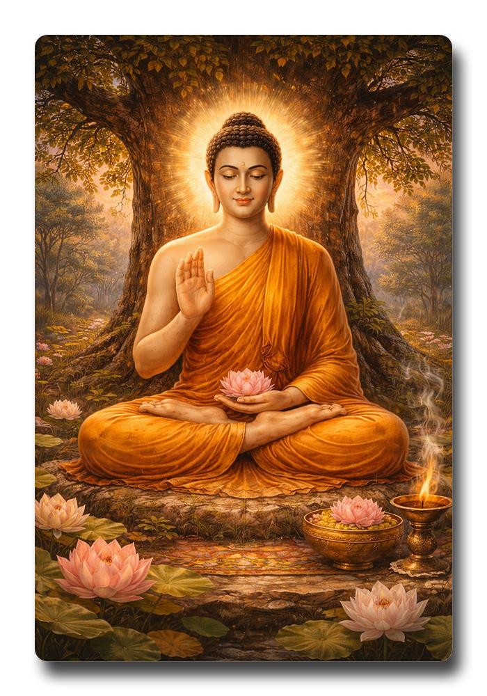 Elevate your sacred space with our exquisite Sparkle Acrylic Photo Frame, featuring a mesmerizing depiction of Buddha in deep meditation under a magnificent, glowing tree. This serene artwork radiates an unparalleled sense of tranquility, inviting peace and mindfulness into any room. Observe the Buddha, serene and wise, gently cradling a delicate lotus flower, a symbol of purity and enlightenment, while surrounded by an array of spiritual offerings that enrich the scene with profound meaning and reverence. The glowing tree, rendered with subtle brilliance, casts a gentle light, enhancing the meditative atmosphere and creating a focal point of serene energy. Crafted from premium quality acrylic, this frame is not just a picture; it's a durable piece of art designed to catch the light and shimmer with a subtle, captivating sparkle, bringing the vibrant colors and intricate details to life. Its resilient construction ensures lasting beauty, making it perfect for your living room, meditation altar, yoga studio, office, or bedroom. This unique frame serves as a constant reminder to seek inner peace, cultivate wisdom, and embrace the path of serenity. It's an ideal gift for spiritual seekers, yoga enthusiasts, or anyone desiring to infuse their environment with calming, spiritual energy. Transform your home into a sanctuary of peace and reflection. Bring the essence of enlightened tranquility into your daily life with this radiant Buddha frame. Let its luminous presence inspire calm, encourage mindful living, and adorn your walls with timeless spiritual beauty. Experience the profound peace and radiant energy this sparkling masterpiece truly brings!