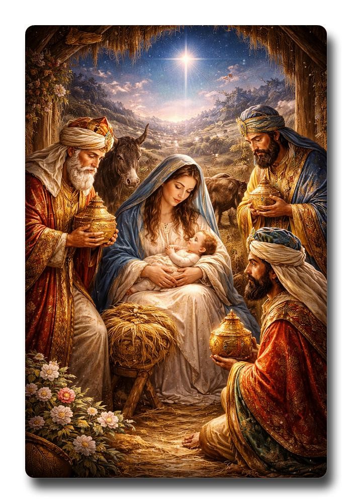 Embrace the true spirit of the season with our breathtaking Sparkle Acrylic Photo Frame, a radiant piece bringing the sacred story of Christmas to life. This exquisite frame showcases a tender image of Mary gently cradling baby Jesus, while the three wise kings offer their precious gifts, guided by the brilliant Star of Bethlehem. Crafted from high-quality sparkle acrylic, this unique frame beautifully captures and reflects light, creating a dazzling shimmer that enhances the artwork's ethereal beauty. Unlike traditional glass frames, our acrylic design is incredibly durable, lightweight, and shatter-resistant, offering lasting beauty and peace of mind. It provides crystal-clear clarity, allowing every detail of this iconic nativity scene to shine. Perfect as a cherished addition to your holiday decorations, it will become a captivating focal point on your mantelpiece, shelf, or tabletop, inviting wonder and contemplation. More than a decoration, it is a profound symbol of faith, hope, and the joyous miracle of Christ's arrival, filling your home with warmth and grace. Its elegant design makes it an unforgettable and deeply meaningful gift for family and friends, ideal for Christmas, religious celebrations, or as a thoughtful gesture of shared belief. Bring the sacred magic of Bethlehem into your living space and let its subtle sparkle illuminate your festive display. A timeless piece, treasured across generations, celebrating the everlasting message of love. Let the light of the Star of Bethlehem shine brightly in your home this holiday season and beyond, adding a touch of divine elegance and heartfelt tradition.